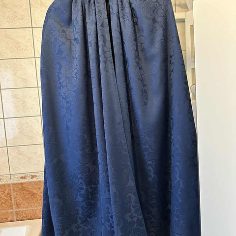 Capet er sydd i kongeblå ulldamask og foret med svart ullstoff. Capet har en sølvhekte i halsen.