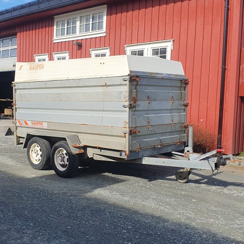 Høye karmer opp til 80cm. Perfekt til å kjøre bort hageavfall. Følger med gaupen trekk for å ha over, kan brukes både med og uten de høye karmene.