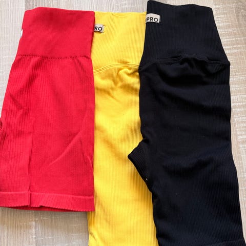 En treningstights fra BikBok og to treningstopper fra BumPro selges samlet. Alt er nytt og ubrukt, med lapp på. Str XS/S.