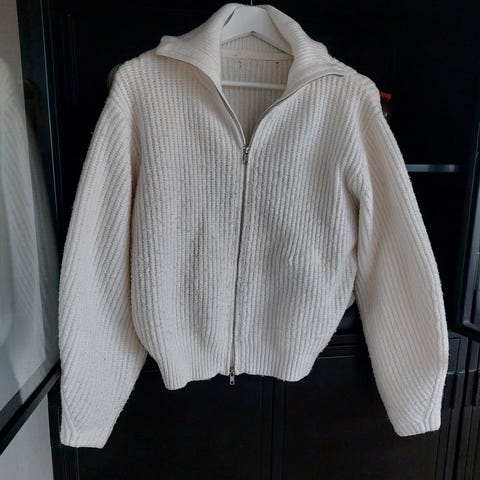 Godt brukt men fremdeles mye igjen, strikket i bomull med blått anker og perfekt for seildager