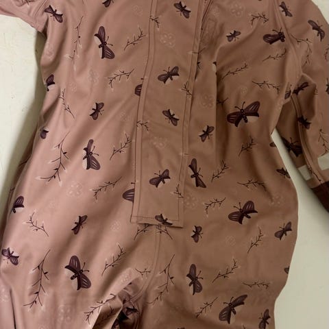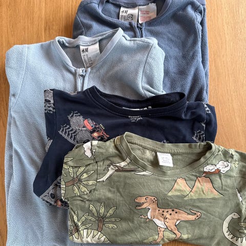 Hettegenser med dinosaurer, noen merker i front, ikke synlig ikke forsøkt å fjerne
