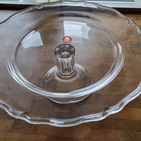 To like osteklokker, eller kakefat om du vil, te salgs. Den eine er 32 cm, den andre 22 cm. Innvendig mål på klokka er ca 26 cm, og 15 cm. Solide klokker i glass, flotte til bruk ute om sommeren, hold fluene unna. . Selges samla for 490kr. Sender gjerne.