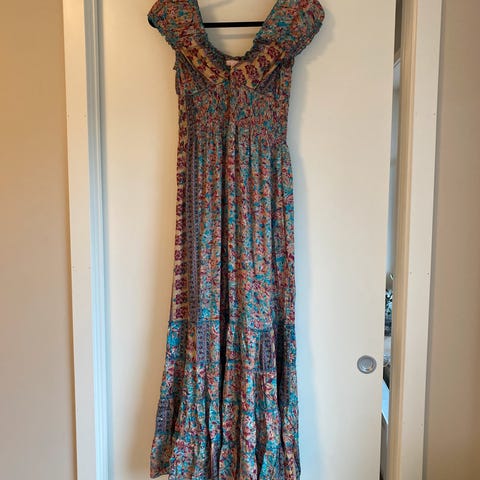Herlig sommerkjole kjøpt i Barcelona. Kule kryss bak på ryggen. Utsving i skjørtet. Behagelig på, elastisk bomullsstoff.