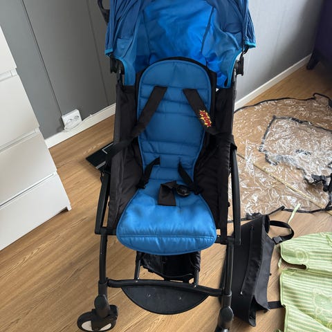 Kun stått inne og brukt som sovevogn i barnehage 😊 uten bagdel.
