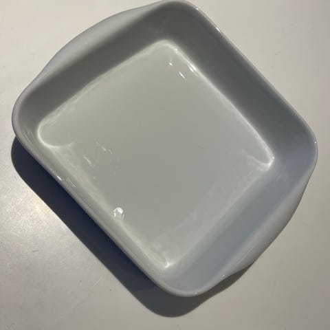 ovnsform i hvit.Denne ovnsformen er laget av slitesterk keramikk og har en klassisk hvit farge. Perfekt for baking og steking av ulike retter. Enkel å rengjøre og passer godt inn i de fleste kjøkkenstiler.