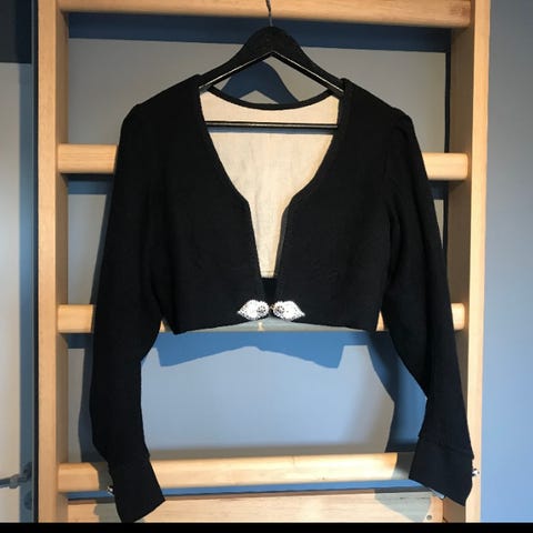 Hei! Selger en sort jakke (ullblanding) som ble for liten til meg. Fine detaljer og kantebånd i fløyel
