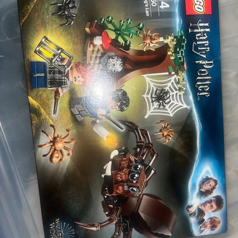 Komplett Lego 75950 Aragog's Lair / Argarapps hule med eske og hefte selges. Alle delene er på plass, samt noen deler til overs (se bilde). Heftet og eska er i fin stand.