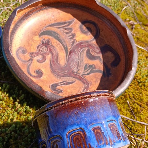 Inge Lise Eder keramikk kunst fat, vase og bolle