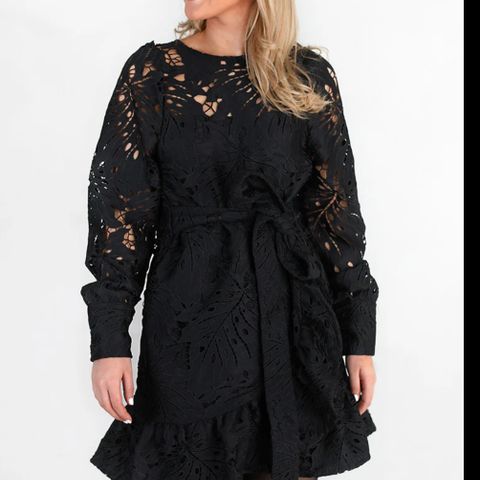 Nydelig omslagskjole fra Ella og Il med vakre blonder i flott rosafarge. Lange ermer uten fór med elastiske smock- mansjetter. Ufóret brystparti. Kjolen har omslagssiluett på skjørtet. Kjolen har knytebelte og volanger nederst. Str S.