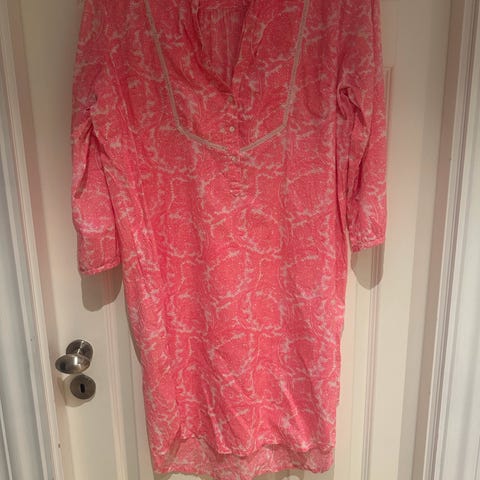 Tøff kort sommerkjole str XL fra Saint Tropez selges for 20 kr + evnt porto. Kjolen er grå, med innsnøring i livet. Se bilder for farger på bånd og skuldre.