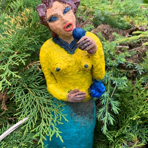 Lekre nakne damer på toppen av kulen, fargerike damer, da det er to av de kan du variere hvilke side som står fremst. Mål: 22 cm, målt rundt kulen på det tykkeste 42 cm. Kan også sendes med PostNord for kr 69 om ønskelig.