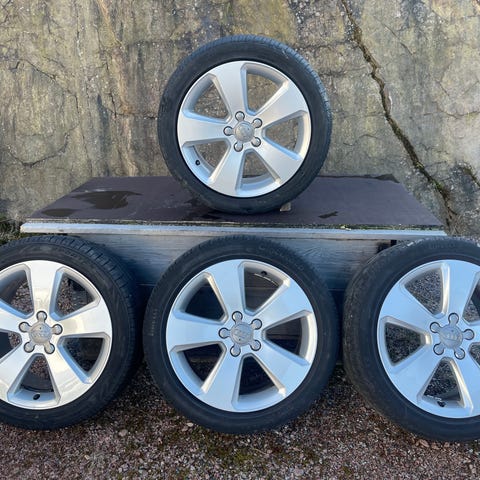 Jeg Selger en originalt kvalitet felger fra Audi som er meget god stand og de er Helt nytt pulver lakkert , bare å sette rett på bilen nylig balansert alle dekkene så du slipper å tenke på det, dekkene er fra 2022 med mye mønster igjen med marke continantal som er en kvalitet merke , dissa passer selvfølgelig til flere biler også bla. VW -Skoda -Mercedes