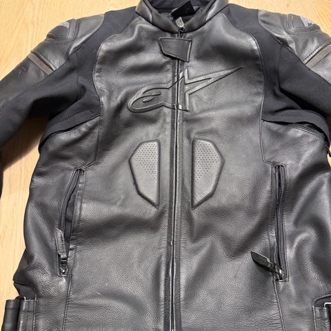 Pent brukt Lindstrans STR skinndress. Det er ingen skader i skinn, stoff eller glidelåser. Skinnet er mykt og behandlet med lærolje og glidelåsene med voks. God å kjøre med da det er stoff i områder med mye bevegelse. Kjøpte den for å ta Road Racing-lisens, men så kom Covid og dressen krympet i skapet..