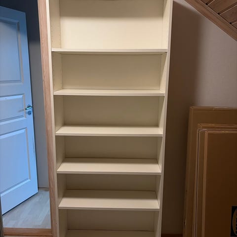 Hvite hyller for Billy skap, 80cm. Knottene følger ikke med. 50 kr pr stk