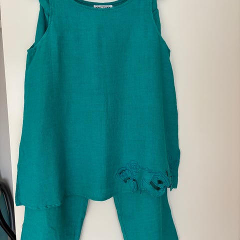 Langt skjørt og topp i lekker blåfarge I str XL. Faller fint. Flott sommer antrekk.Ikke brukt. Sender gjerne med helthjem.