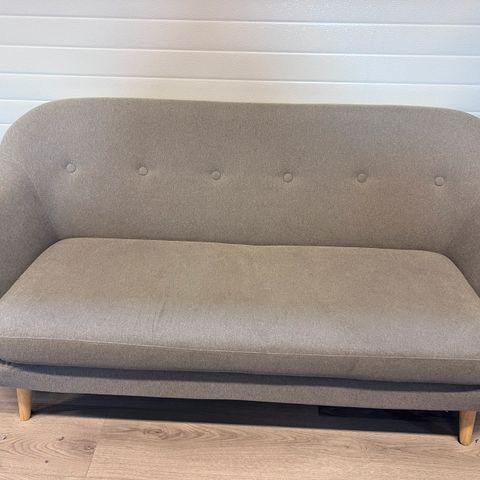 Pent brukt sofa i bjørk. Hel og pen i stoffet.