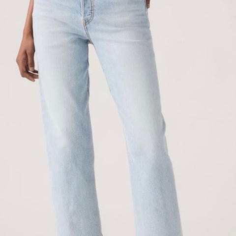 Mellomblå jeans fra Mango. Ubrukt, men jeg har tatt av lappen. 98 % bomull og 2 % elastan. Modellbildene viser en lysere vask.