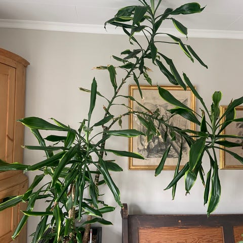 Høyde 60 cm, med hvit plast potte.