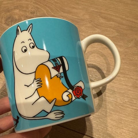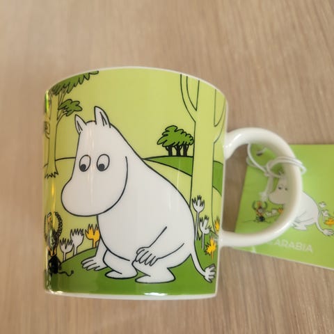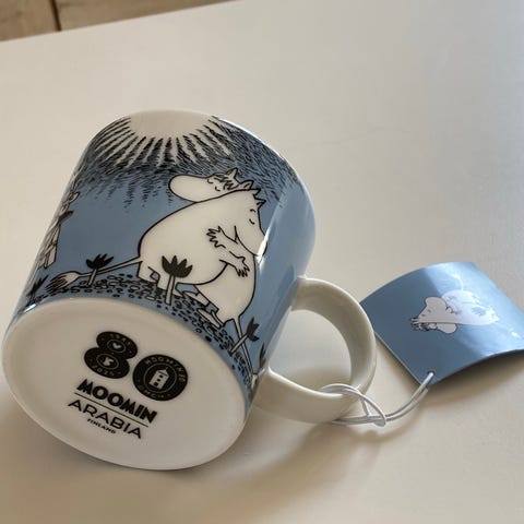 Arabia Mummikopp 3dl Turkis Mummitroll med etiketter selges.