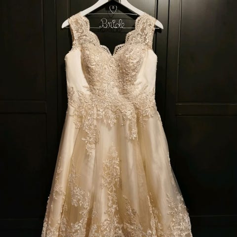 Kun brukt 1 gang som kjole nr 2 i bryllup. Som ny.