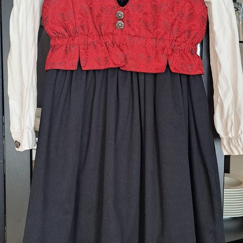 Med skjorte og forkle. Str 8 år. Selges for 150kr.