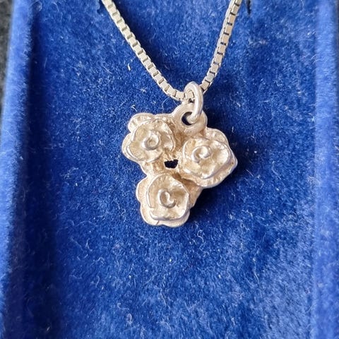 Aldri brukt. 80 cm kjede. Det ene merket på smykkeboksen er løsnet, men det kan limes. Ny pris 1100,- kan sendes med posten for kjøpers regning.