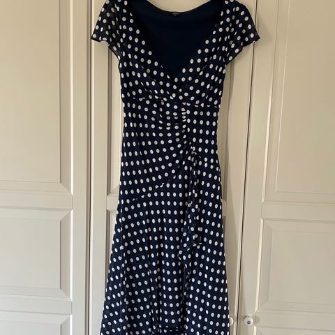 Nydelig prikkete blå/hvit kjole med ‘kappe’ i livet. Passet ikke til meg så den er aldri brukt. Prikker er trendy i 2026….... Dorothy Perkins