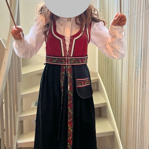 Pen festdrakt str 164/14 år til leie. Komplett m skjorte og stakk 💜