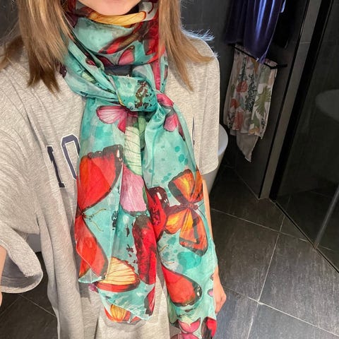 Tubeskjerf i farger som matcher kjolen. Pris kr 100.