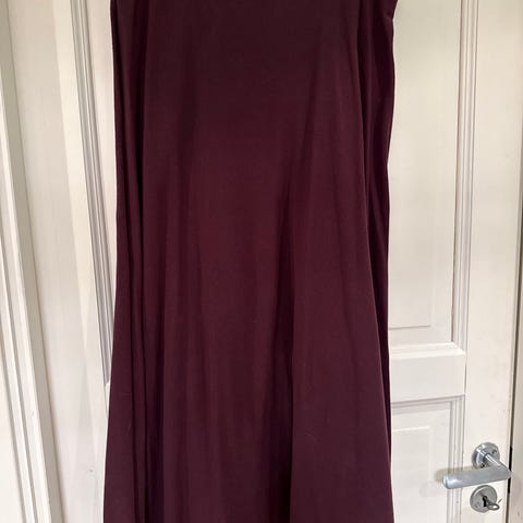 Lengden er 77 cm.Det er strikk i livet og når man strekker ut den så er bredden ca 50 cm.Det er av 100 % polyester.Skjørtet er lite brukt.Det kan hentes hos meg i Oslo eller jeg kan sende det og kjøper betaler porto.