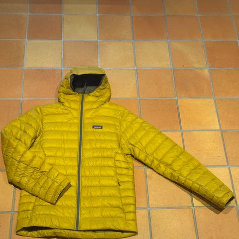 Patagonia jakke i størrelse M, farge rød. Jakken har hette og brystlomme med glidelås i kontrastfarge. Kjøpt i Patagonia butikken i Toronto Canada i oktober, kun brukt en gang.
