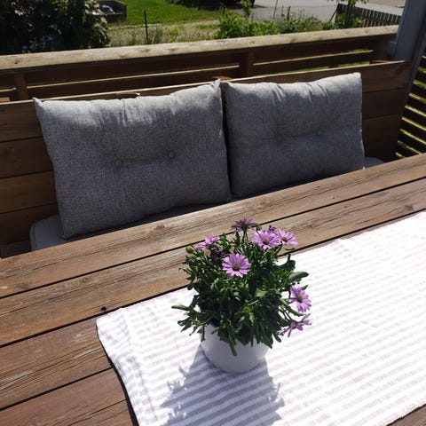 Pent brukt balkongkasse i kurv. 45 cm i lengde. Hentes på adressen.