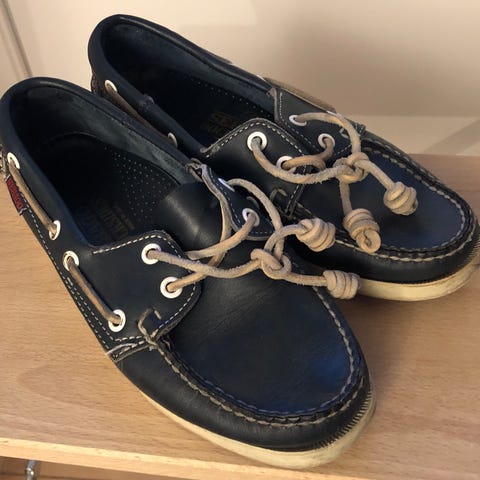 Godt brukte, men ser MYE bedre ut på foten enn de gjør på bildet! Dette er klassiske docksides med den opprinnelig originale designen. Veldig gode å gå i og uslitelige som alle Sebago-produkter. Selges fordi de er for store.