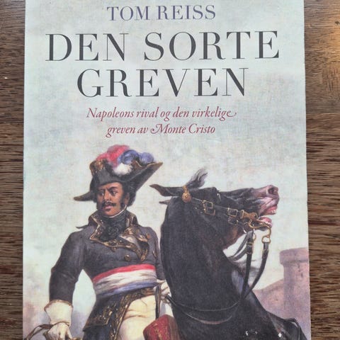 Tom Reiss: Den sorte greven- Napoleons rival og den virkelige greven av Monte Cristo. Press 2014. Om general Alex Dumas, den virkelige greven av Monte Cristo. Boken er innbundet og har omslag, pen stand, virker ulest. Kan sende.