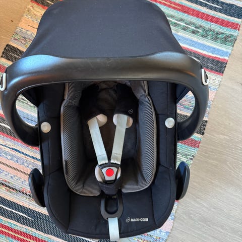 Maxi-Cosi bilstol til barn med innleggspute og base til Stokke barnevogn selges, passer barn 45-75 cm, og max 12 kg.