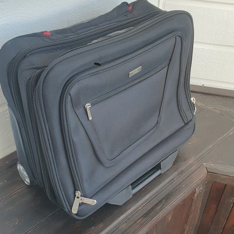 Praktisk trillekoffert spesielt for jobbreisende. Egen lomme til PC og plass til dokumenter osv.