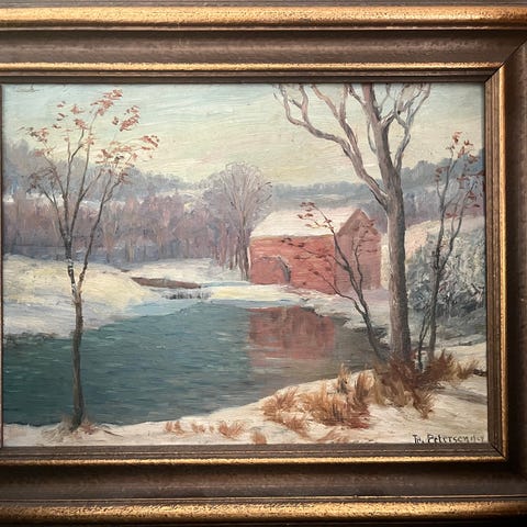 Dag Fyri. Snø i skyggen - hus fra åsrygg. Vettakollen. Litografi. Som nytt