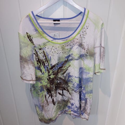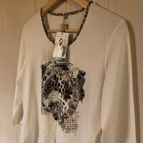 Ny topp str. M hvit med pent mønster. Den er kjøpt på Zavanna.