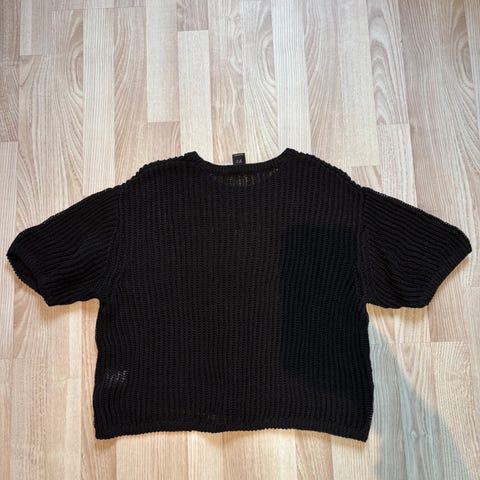Fin genser i økologisk bomull. Lang modell loose fit, splitt i sidene, litt lengre bak. Den henger fint. Selges pga feil størrelse for meg.