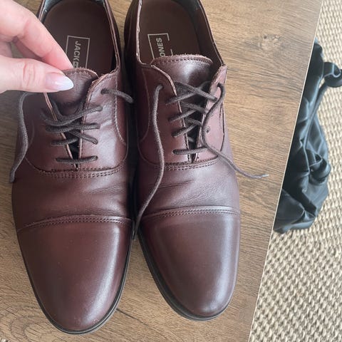 Fine sko frå Jack&Jones kjøpt til konfirmasjon. Har etter dette vore brukt berre nokre få gongar. Kort tid etter vart skoa for små til fotane.