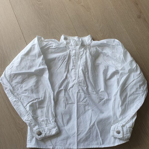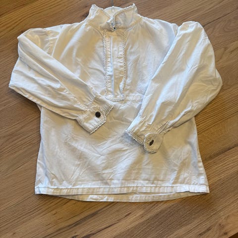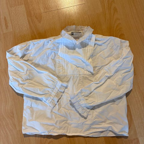Pen bunadskjorte, men litt slitt ved ermene. Fortsatt fin og tåler flere omganger med is og pølse🥳
