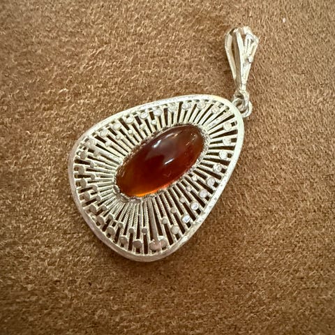 Stort sølv anheng med rav💛🦘🦘. 4,5 cm. 925 sølv. Fast pris 300 kr pluss porto 30 kr