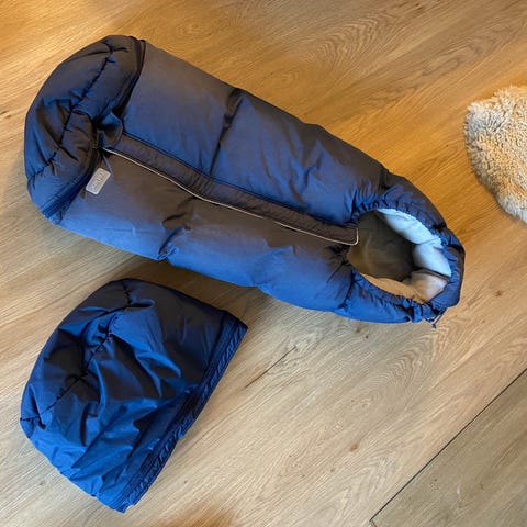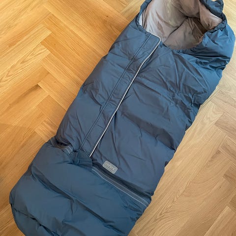 Vognpose fra reflex. På bilde vises posen med forlengerdel, men finnes også en kortere del som kan settes på for at den skal passe bedre i babybag til vogn.