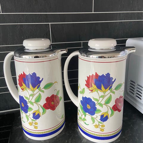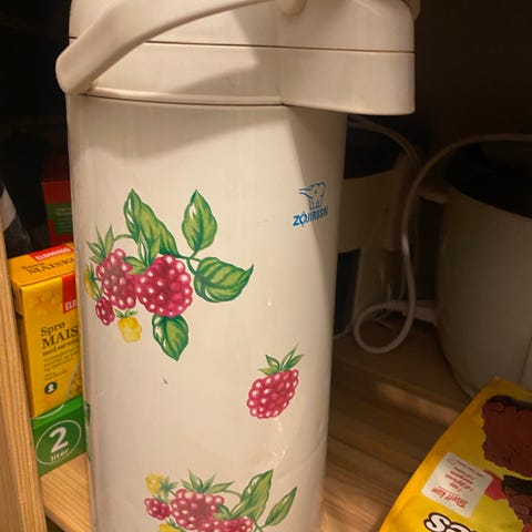 Pumpe-termokanne på 1,85 liter selges. Glassbolle og metall utside. Pent bruk. Et par små og ubetydelig trykkmerker..