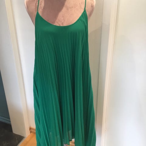 Pen kjole med strikk oberst slik at den ligger nede på skuldrene. Str 40 i serrisrosa. Blonder på slik at den blir ekstra skjønn 💕