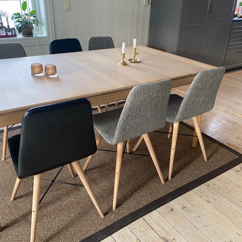 Spisestuestoler av massiv eik fra Bolia selges samlet til meget gunstig pris.