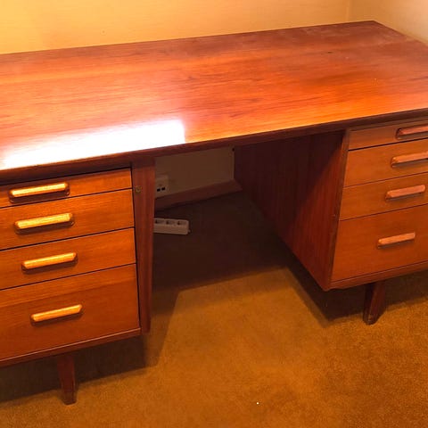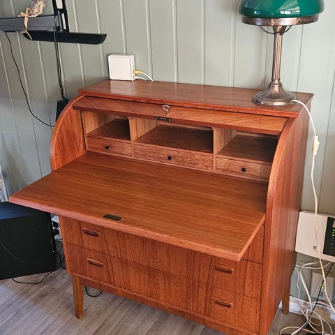 Teak skrivebord med barskap 1960 sola møbler snekker Olav Laupsa ny pris