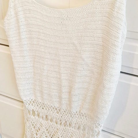 Heklet singlet fra Gina Tricot. Str S, men kan minne om en 36/38 da det er en løs modell. Lite brukt, ingen merker.