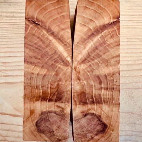 Har noen emner fra et morelltre som vi måtte sage ned pga. graving på tomta. Tre ble hugget i vinteren 2024, så emnene er nok ikke helt tørre enda. Men de tørker langsomt under tak.