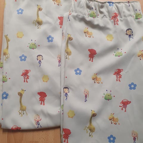 Selger 140*160 cm x 2 lengder i fin nøytral hvit med bamsemotiv gardiner til barn.